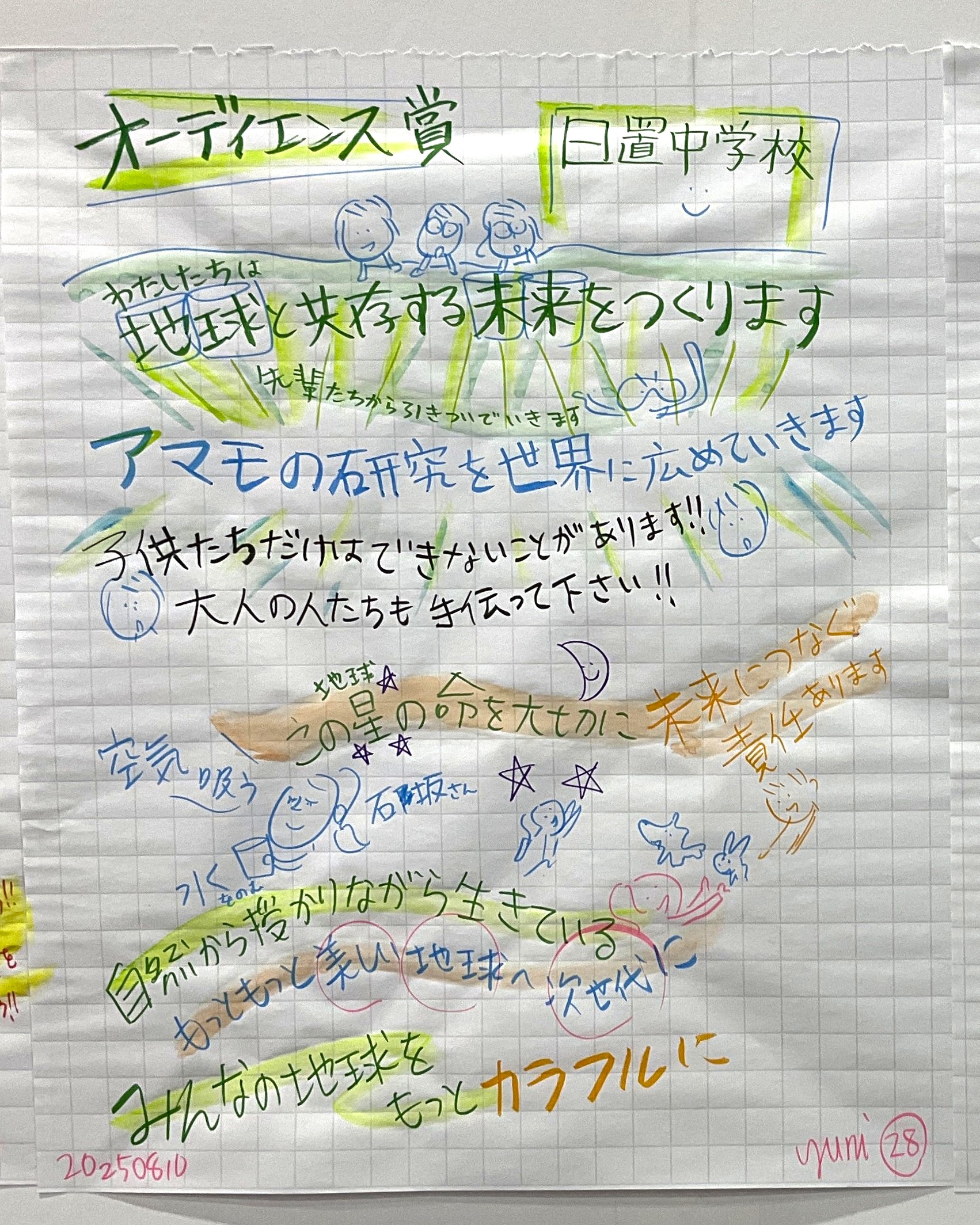 普段、企業で「ビジョンを描く」お仕事をしていると「ハラオチしない」とか「浸透しない」とか、そんな話になりがちですが、いやいや、子供たちの取り組みをぜひご覧ください。本当に「未来を創る」とは、こうした熱い想い(ハート)の描ける活動から始まることを、改めて思い知らされました。まさにフォーラムの趣旨でもある「未来の大人から今の大人が学ぶ機会」となりました。