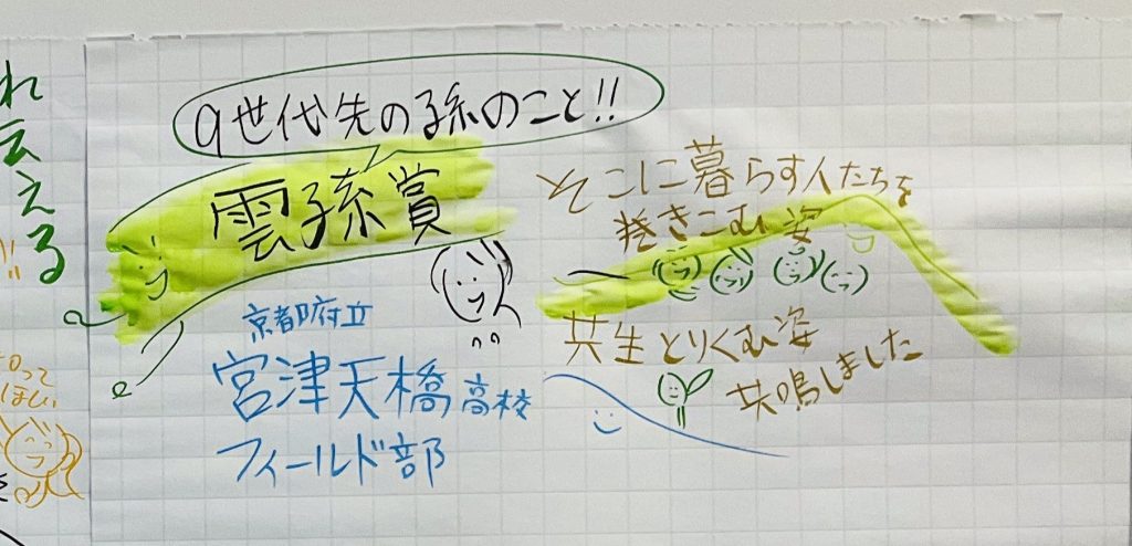 宮津天橋高校フィールド探究部。 京都府立宮津(みやづ)天橋(てんきょう)高校2年の皆さん。タイトルは「緑と青と私たち。~みんなの力で残そう、私たちのふるさと~」【当日の登壇動画はこちら】
