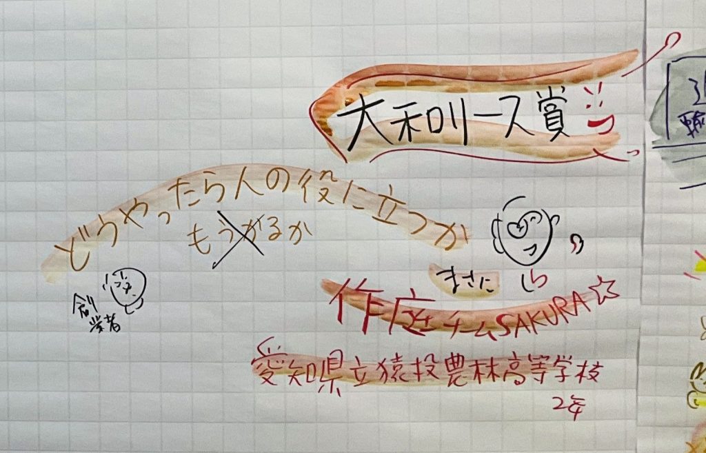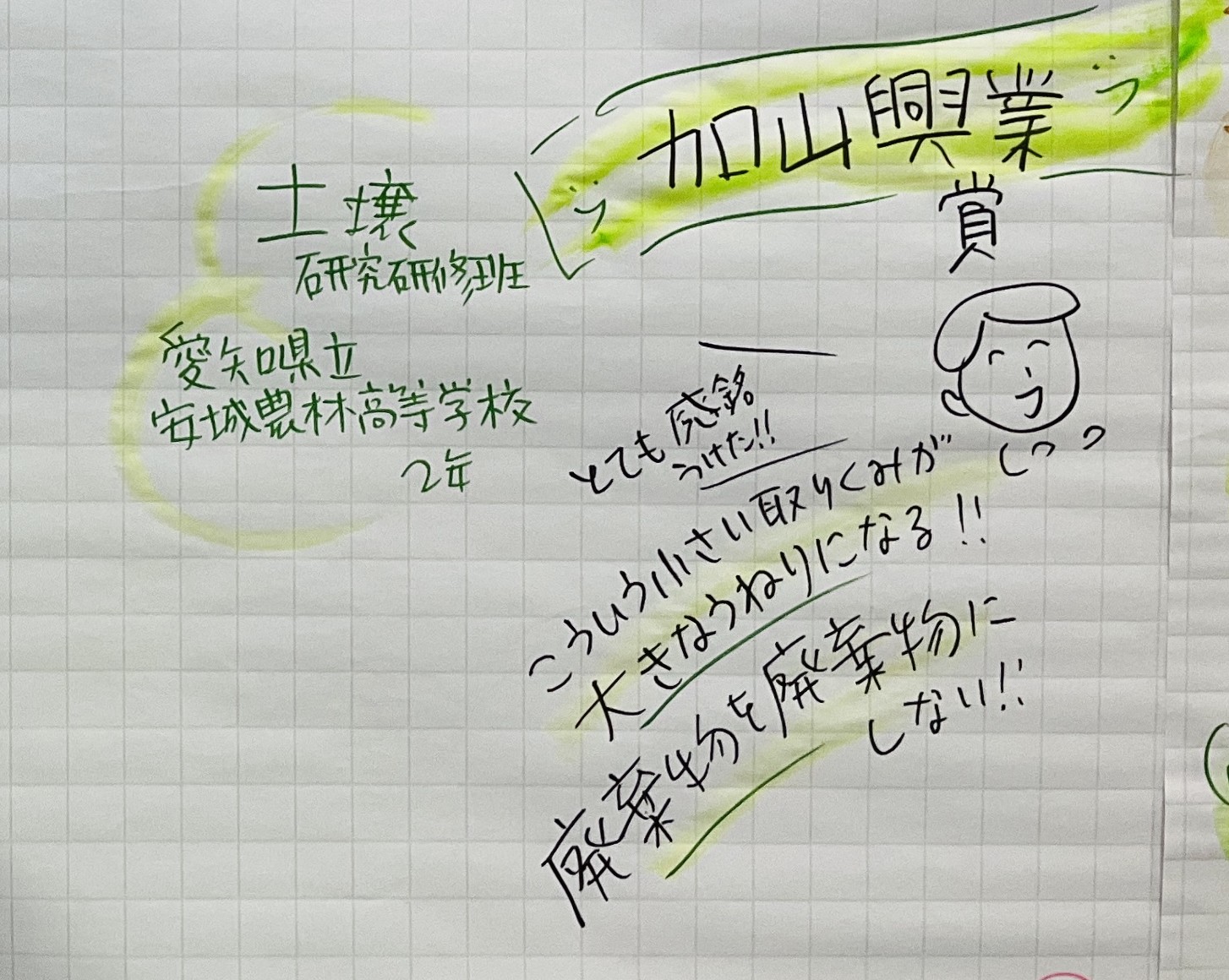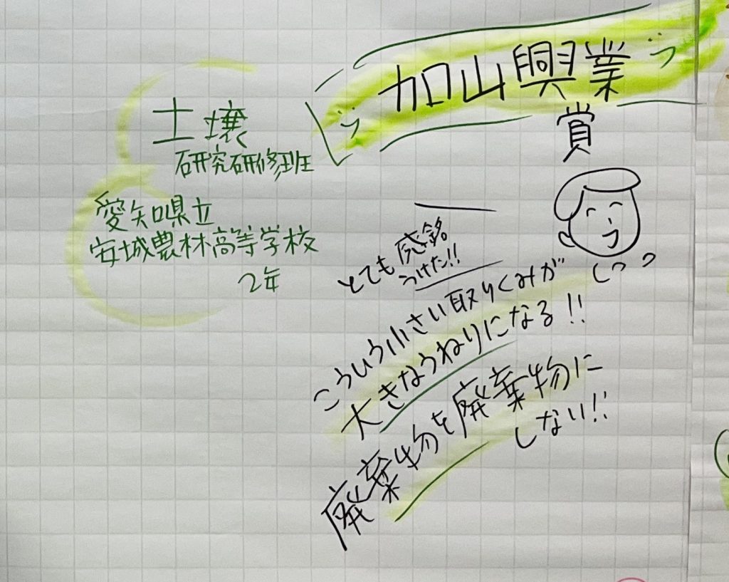 土壌研究研修班。 愛知県立安城農林高等学校2年の皆さん。タイトルは「廃棄物から価値を トマト副産物を活用した持続可能な養殖と農業」【当日の登壇動画はこちら】